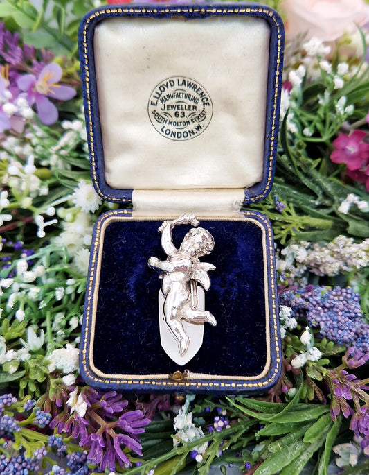 Vintage French Sterling Silver Sculpted Cherub Dress Clip by KEIM Ltd London
