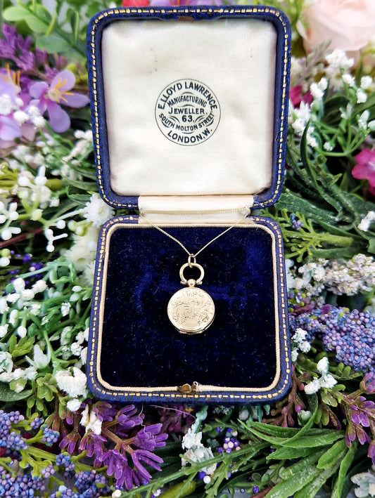 Antique Victorian 9ct Gold Ornate Engraved Ivy Leaf Oval Shaped Locket Pendant