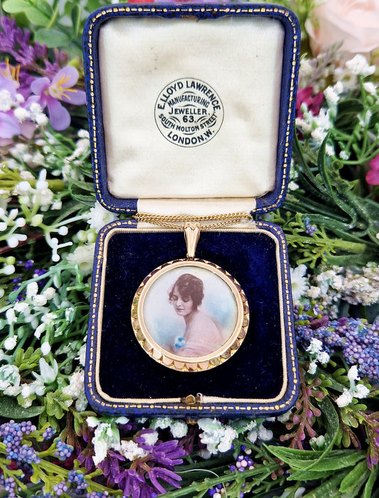 Antique Art Deco Rolled Gold Decorative Large Circular Glass Photo Locket Pendant