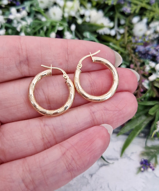 Vintage 9ct Yellow Gold Classic Textured Creole Round Hoop Earrings
