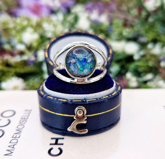 Vintage Sterling Silver Bright Colourful Mosaic Opal Statement Ring / Size R 1/2 or 9.25