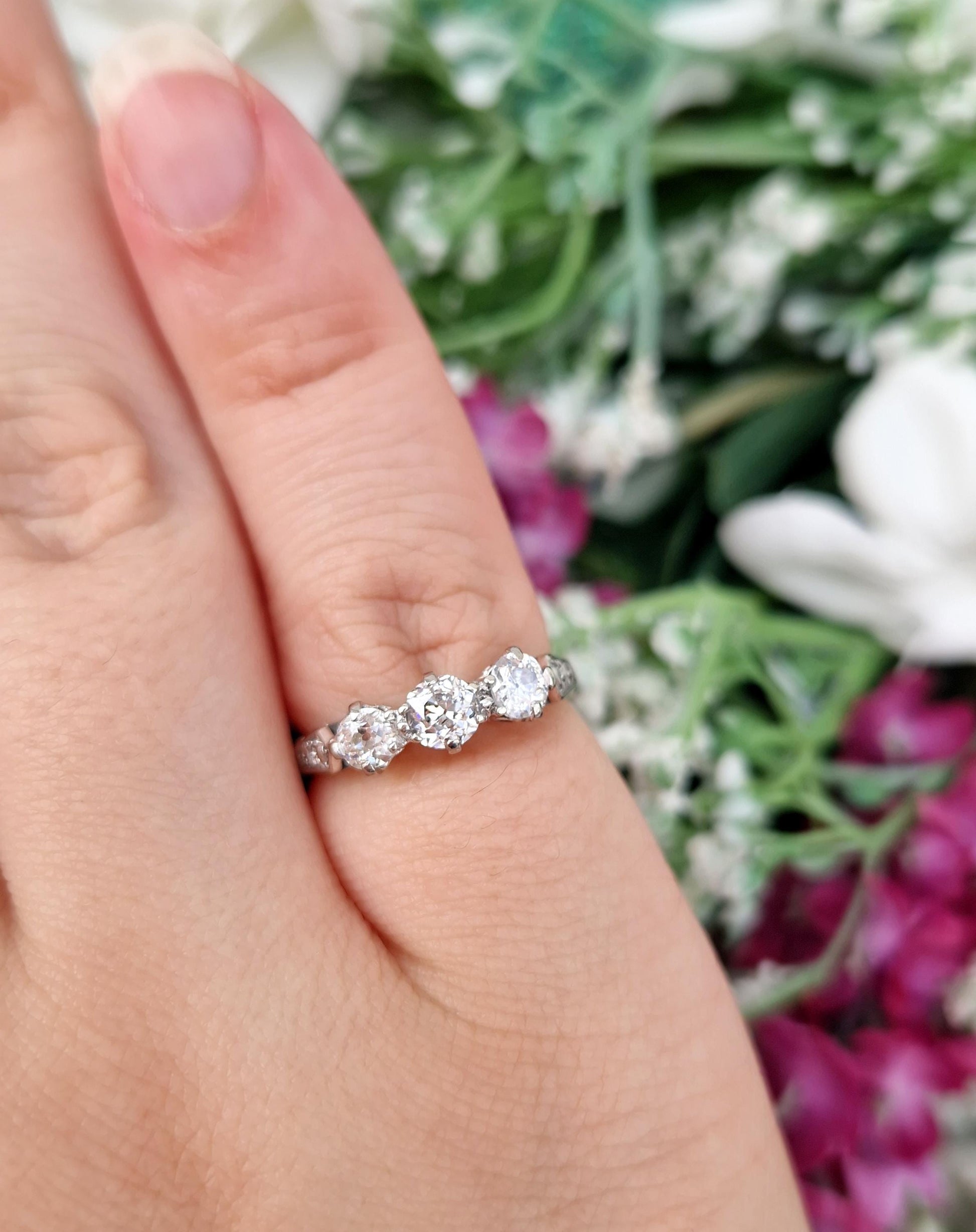 Three-stone engagement rings hold a different meaning than the traditional solitaire ring, and have the ability to tell the story of your journey together. The three stones that make up the ring represent the past, present and the future. Alternatively, the three stones can also symbolize friendship, love and fidelity. Or, two partners and their baby! Trilogy rings are timeless and classic and hold deep meaning for many.