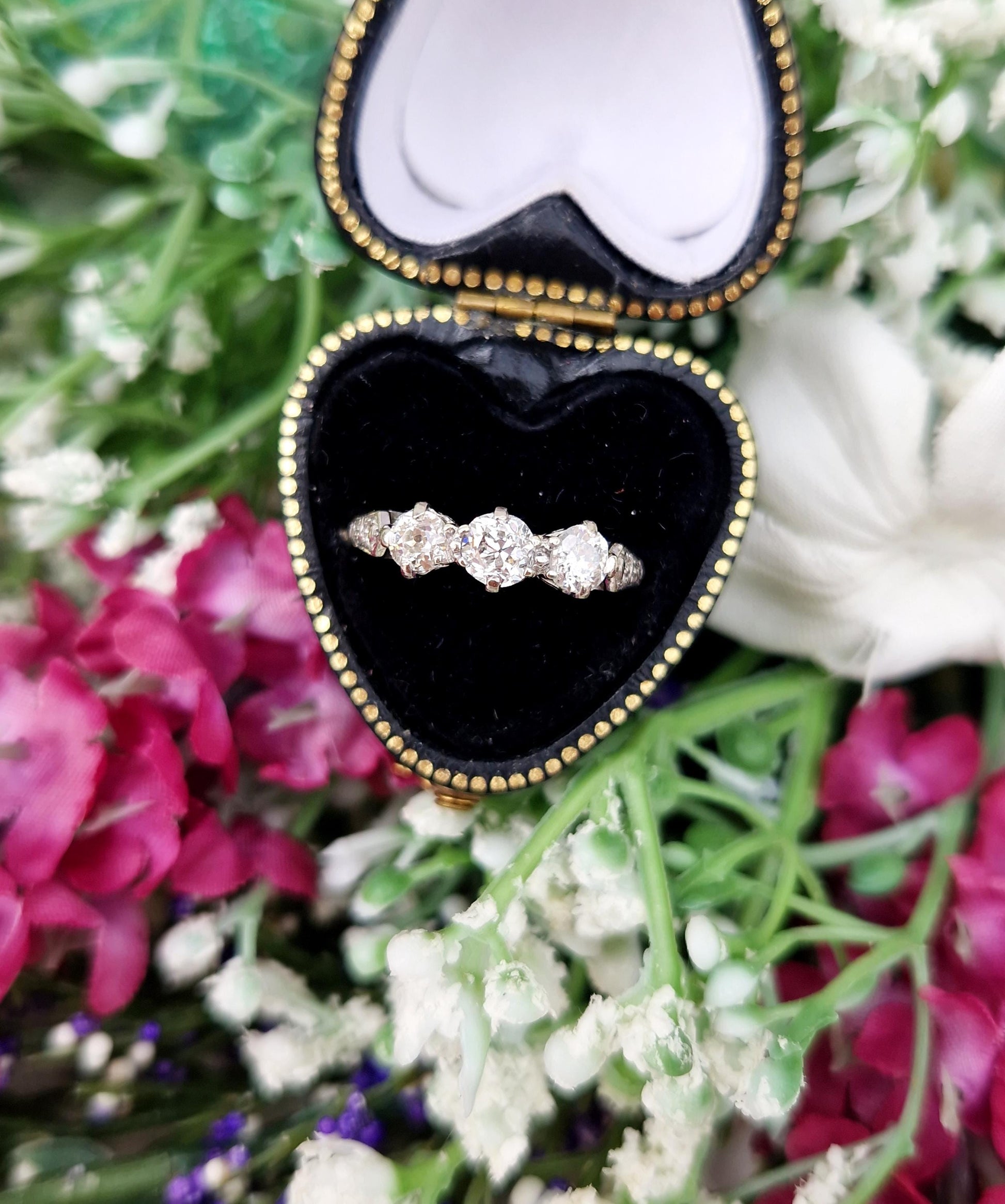 Antique Art Deco 18ct Gold 0.70ct Diamond Trilogy Engagement Ring / Size K 1/2 or 5.75