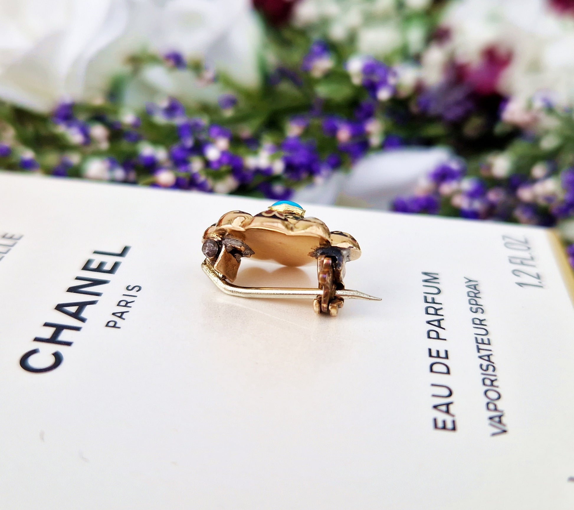 Antique Victorian 15ct Yellow Gold Miniature Ornate Enamel & Turquoise Button Brooch Pin