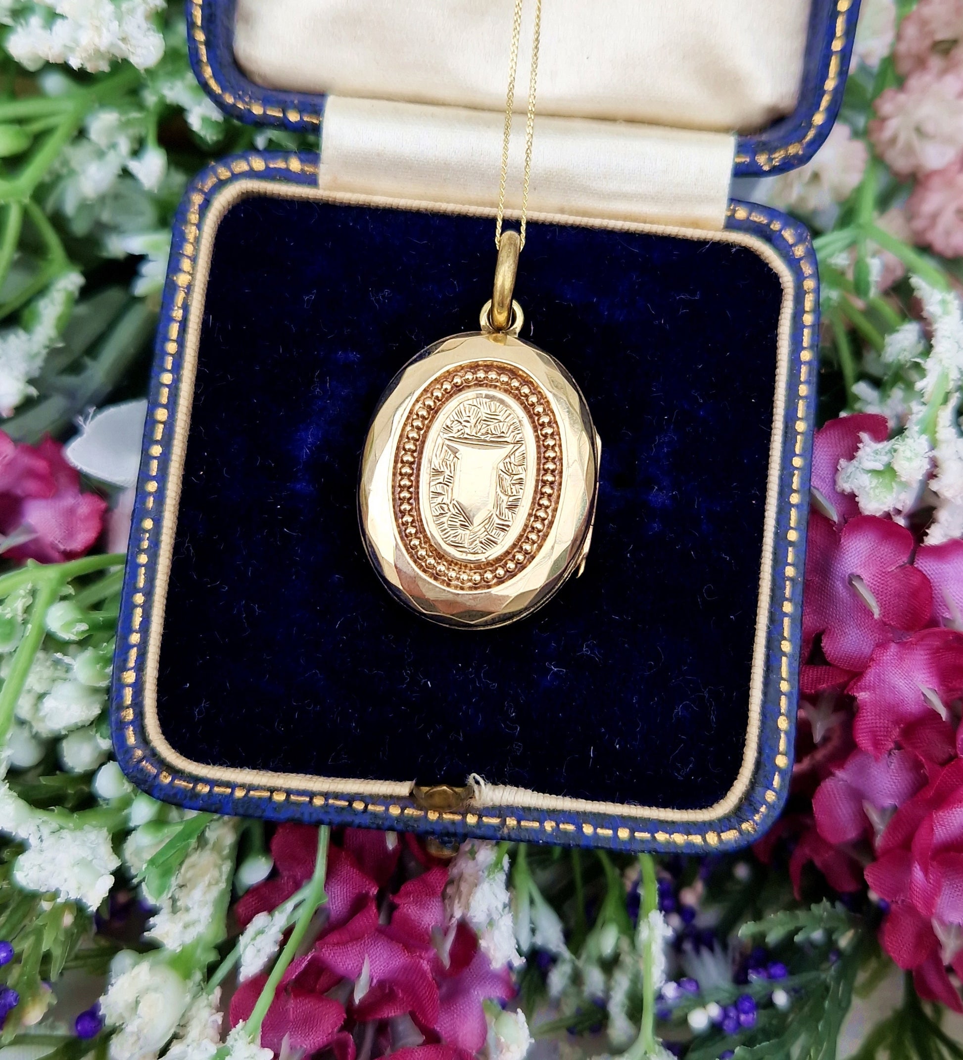 Antique Victorian 9ct Gold Ornate Engraved Shield Oval Shaped Locket Pendant