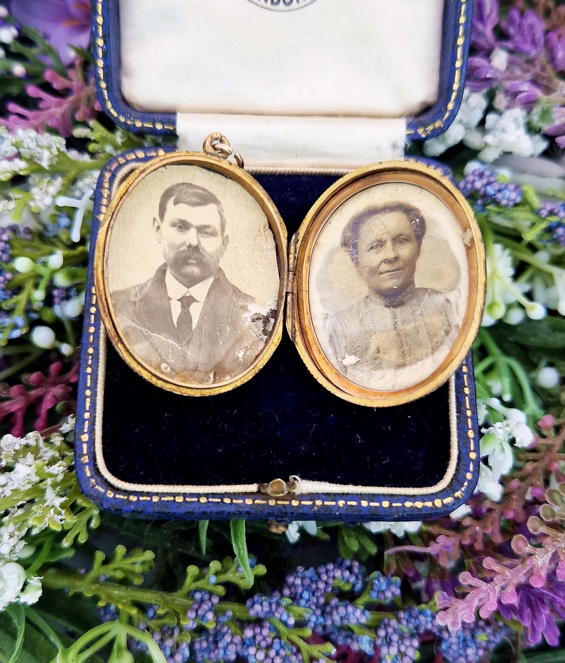 Inside features space for two photos, one original frame is there, but your photos would slot inside both sides as there is a lip on the other side too. Inside the locket currently are two old photos of a man and woman, these can be removed if desired.