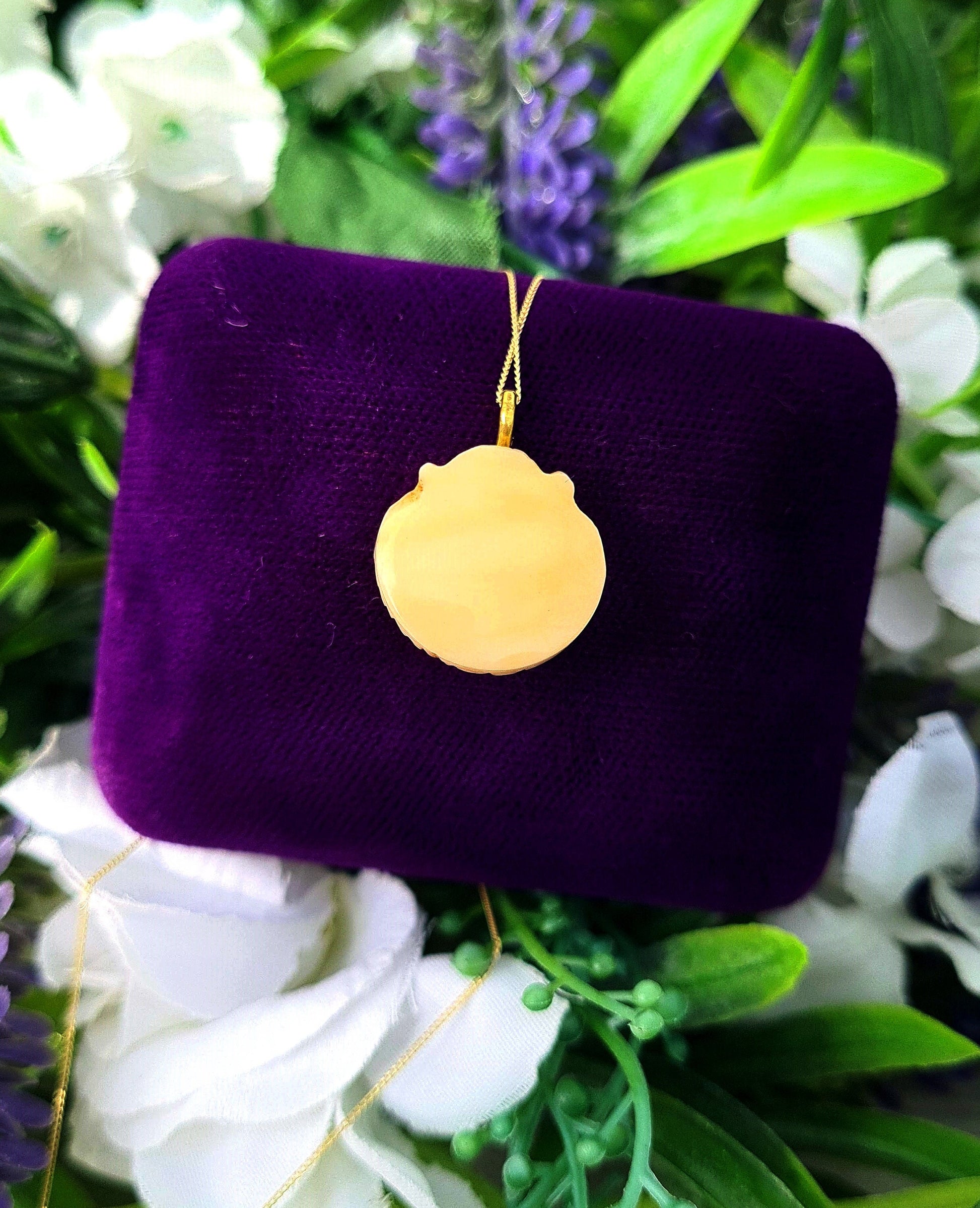 Vintage 9ct Yellow Gold Art Deco Detailed Owl Face Charm Pendant Necklace