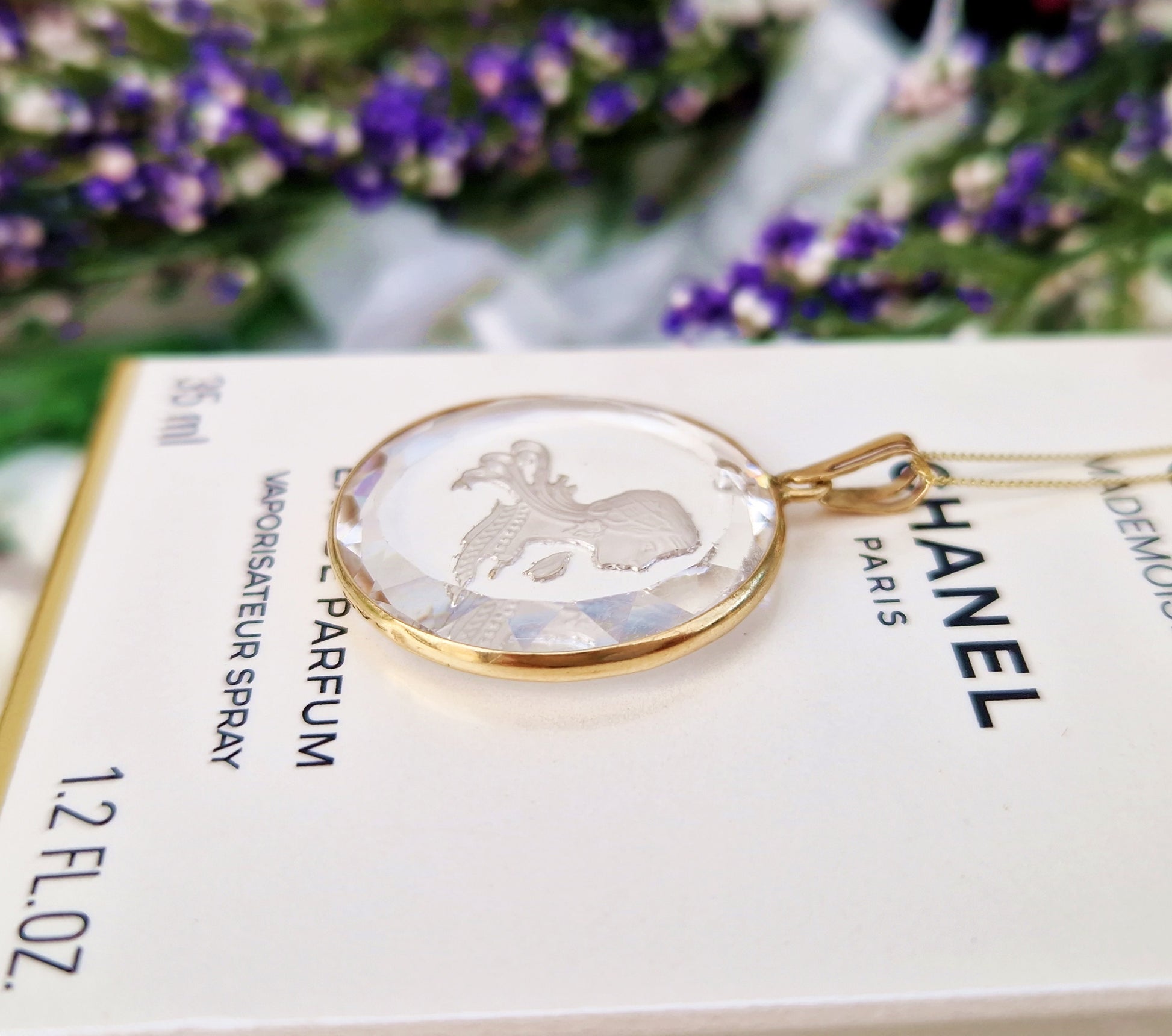 Vintage Art Nouveau Style 14ct Yellow Gold Carved Glass Intaglio Lady Cameo Pendant