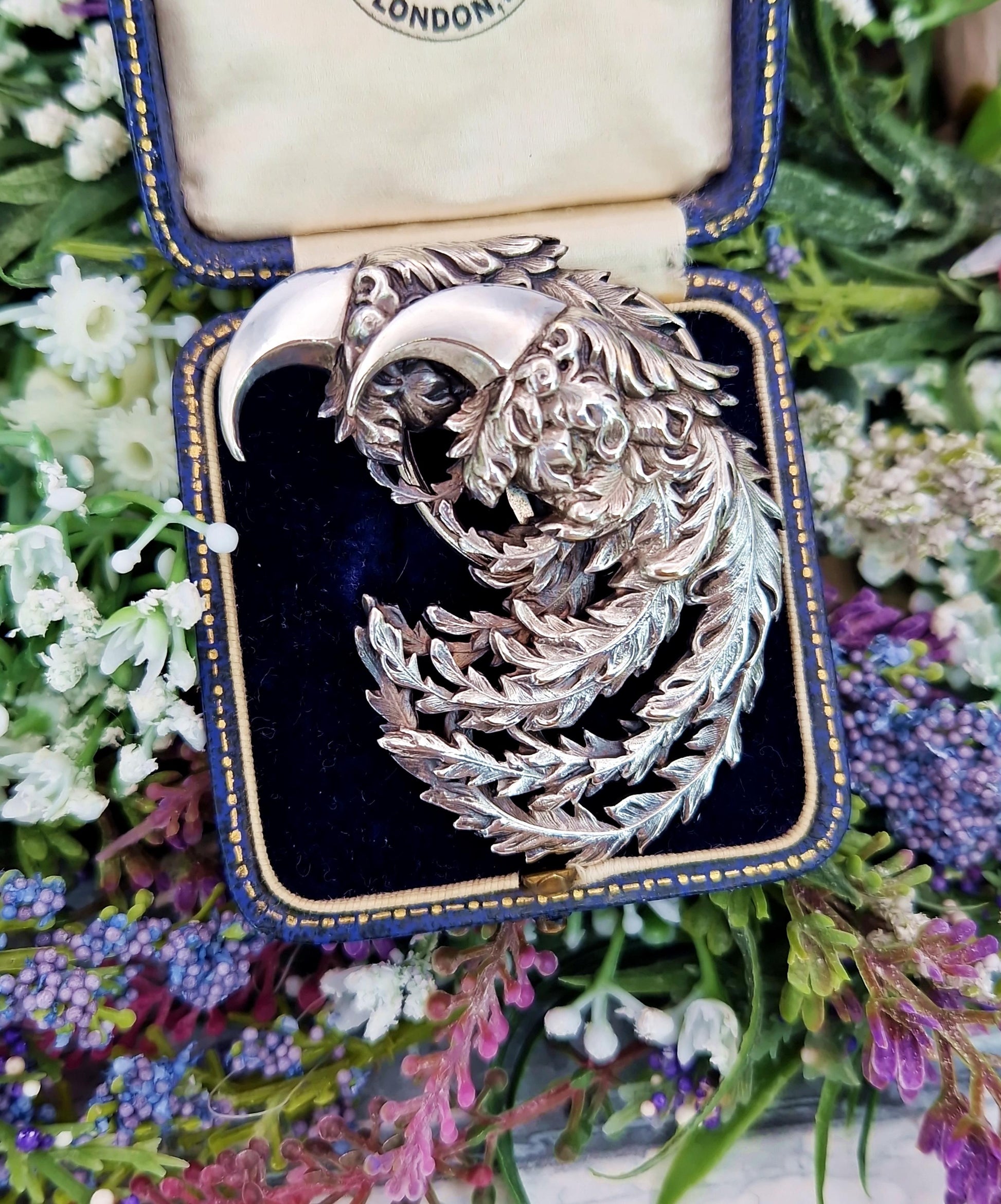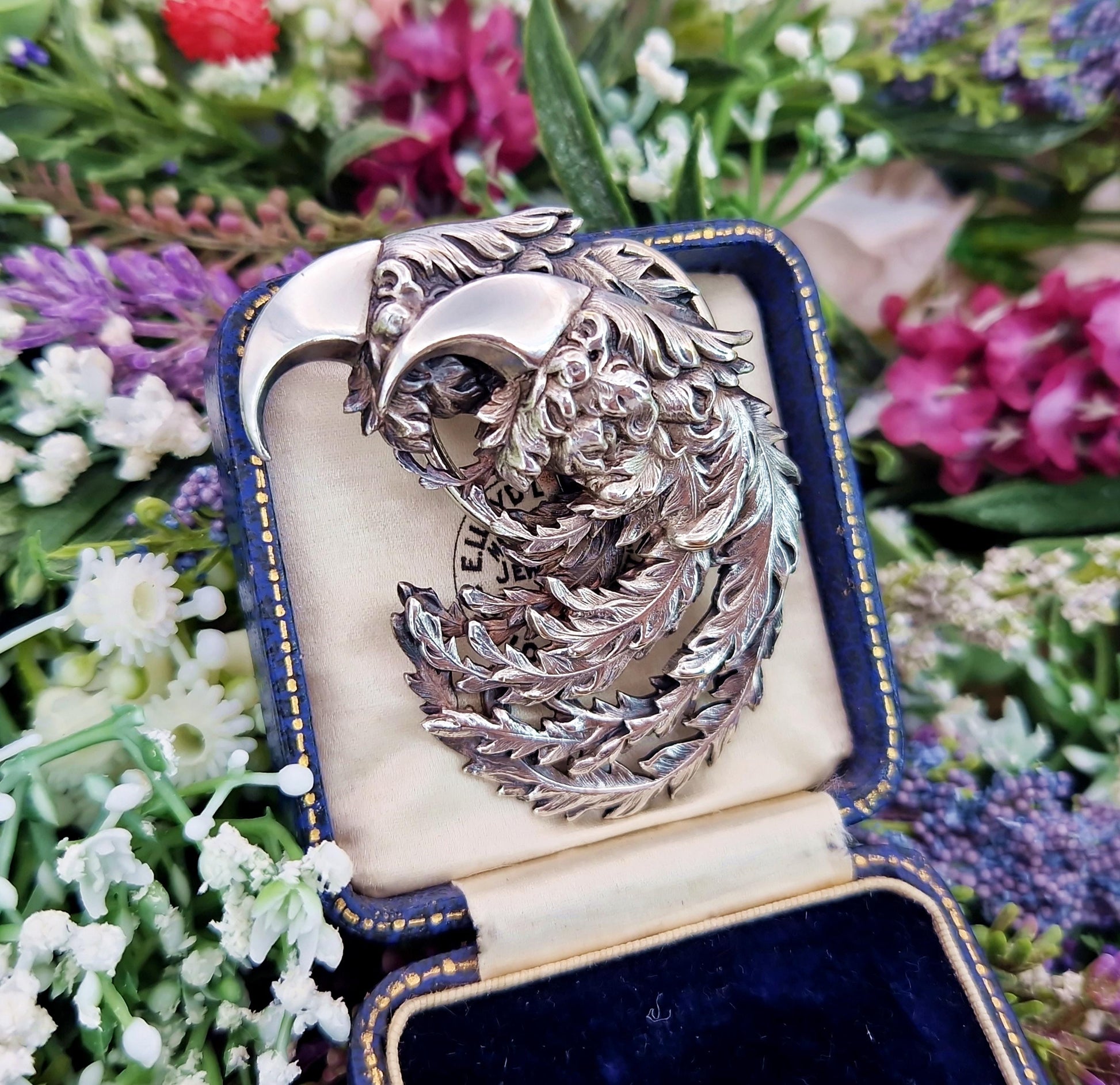 Vintage French Sterling Silver Front Large Fantasy Griffin Claw Scraf Clip