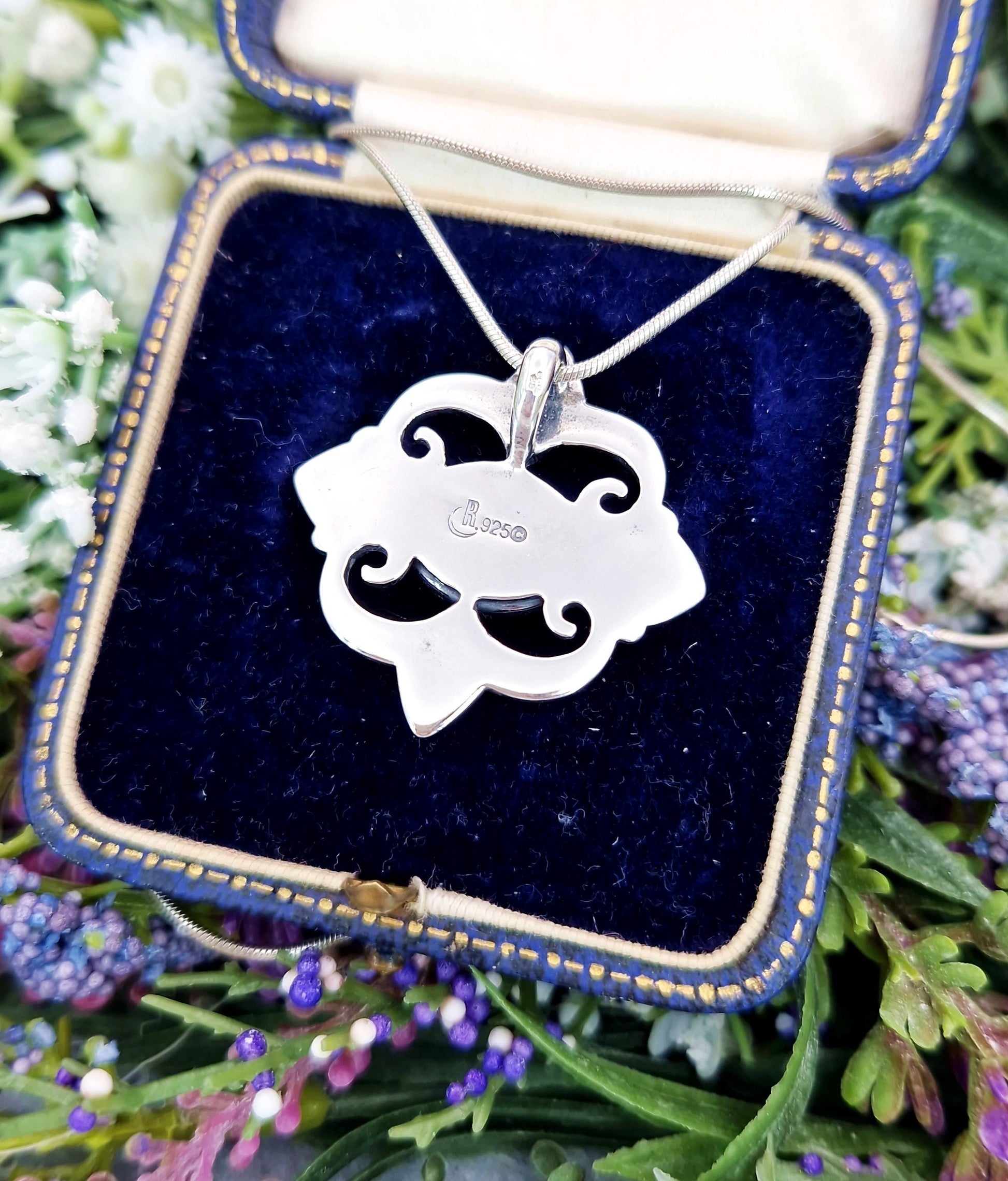 In very good vintage condition with minor light tarnish as to be expected from a vintage item. This pendant and necklace have been professionally cleaned and polished, they're ready to wear or to give as a gift. Please see the photos.